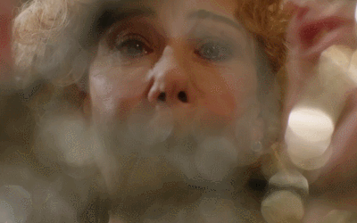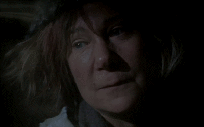 The camera is trained on Moira as she watches George on the phone. We study her face as she studies his. Moira rarely shows her softer side – life has taught her to hide her vulnerability – but here she's visibly moved. As the call ends, a tear falls down her cheek. Moira’s situation is about to get much worse, but this will be the only time she cries.