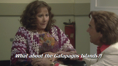 Watching My Family and the Galapagos reminds me of an episode from the fourth series of sitcom My Family, called ‘Deliverance’. Perhaps you remember it too – in a series of flashbacks to the 1970s, Zoe's Susan and husband Ben (played by Robert Lindsay) relive the night eldest child Nick was born. When the expectant couple arrive at the hospital, Susan has second thoughts about becoming a parent... What if she ends up stuck at home changing nappies instead of exploring the world?!