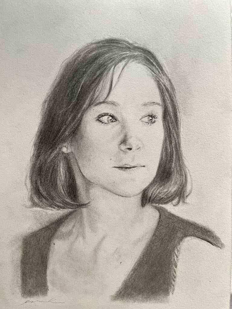 As her reference, Emily used what must surely be one of the loveliest photos of Zoë ever taken. The finished artwork is even more wonderful than I’d hoped. Emily has captured Zoë’s delicate, distinctive features beautifully.