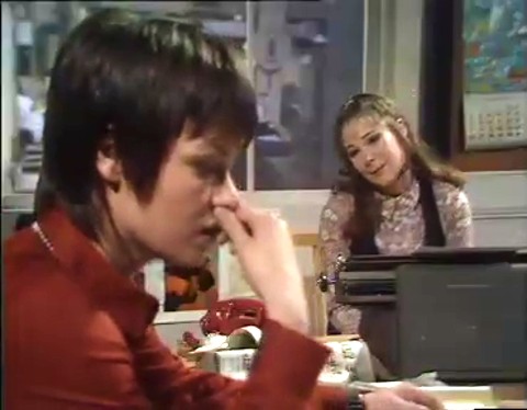 In Zoë’s main scene (which begins just under 23 minutes into the episode), it becomes clear that Sidney has also manipulated Jackie, in order to exert his influence over Jenny’s personal life as well as her career. Jackie admits that Sidney turned up at the office when Jenny was out (‘Listen, Jenny, I haven’t been quite honest with you...’). He persuaded her to hand over Jenny’s home address and phone number. Jackie also reveals that phoney information from Sidney has got Jenny into trouble with her boss.