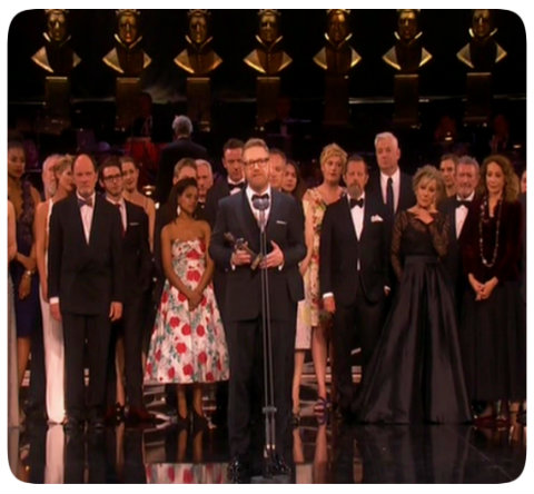 Towards the end of the ceremony, Zoë and her husband were among more than 60 members of the Kenneth Branagh Theatre Company who gathered on stage to celebrate Branagh's Society of London Theatre Special Award. Having both appeared in the company's 2015-16 Plays at the Garrick season in the West End (Zoë in All On Her Own/Harlequinade, Gawn in The Entertainer), they looked delighted to be honouring their friend and colleague.