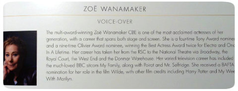 Zoë explained that she has no dream roles, though she'd like to have played Shakespeare's Juliet in her youth. She also achieved a long-held ambition in 2011 by starring as tragic aristocrat Ranyevskaya in Howard Davies' production of Chekhov's The Cherry Orchard. Zoë prefers to adopt a 'reactive' approach to her work rather than chasing specific parts. 'My mum always said don't be too pushy,' she added.