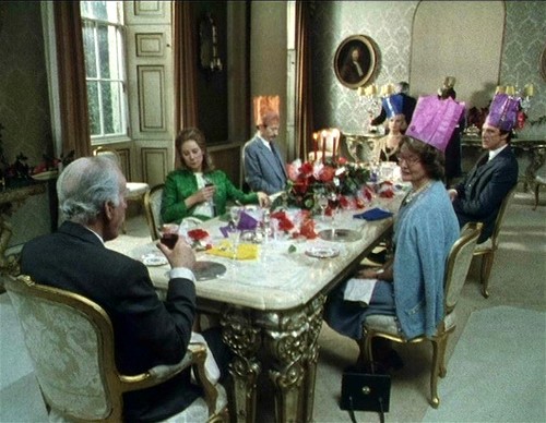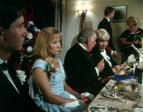 The two snobbish, vicious men jeer at Leslie Titmuss, the son of a lowly clerk at the Simcox brewery, during the Young Conservatives dinner dance. As Charlotte looks on in shock, they throw food at Leslie, before hurling him into the Thames, ruining the hired suit he had worn with pride.